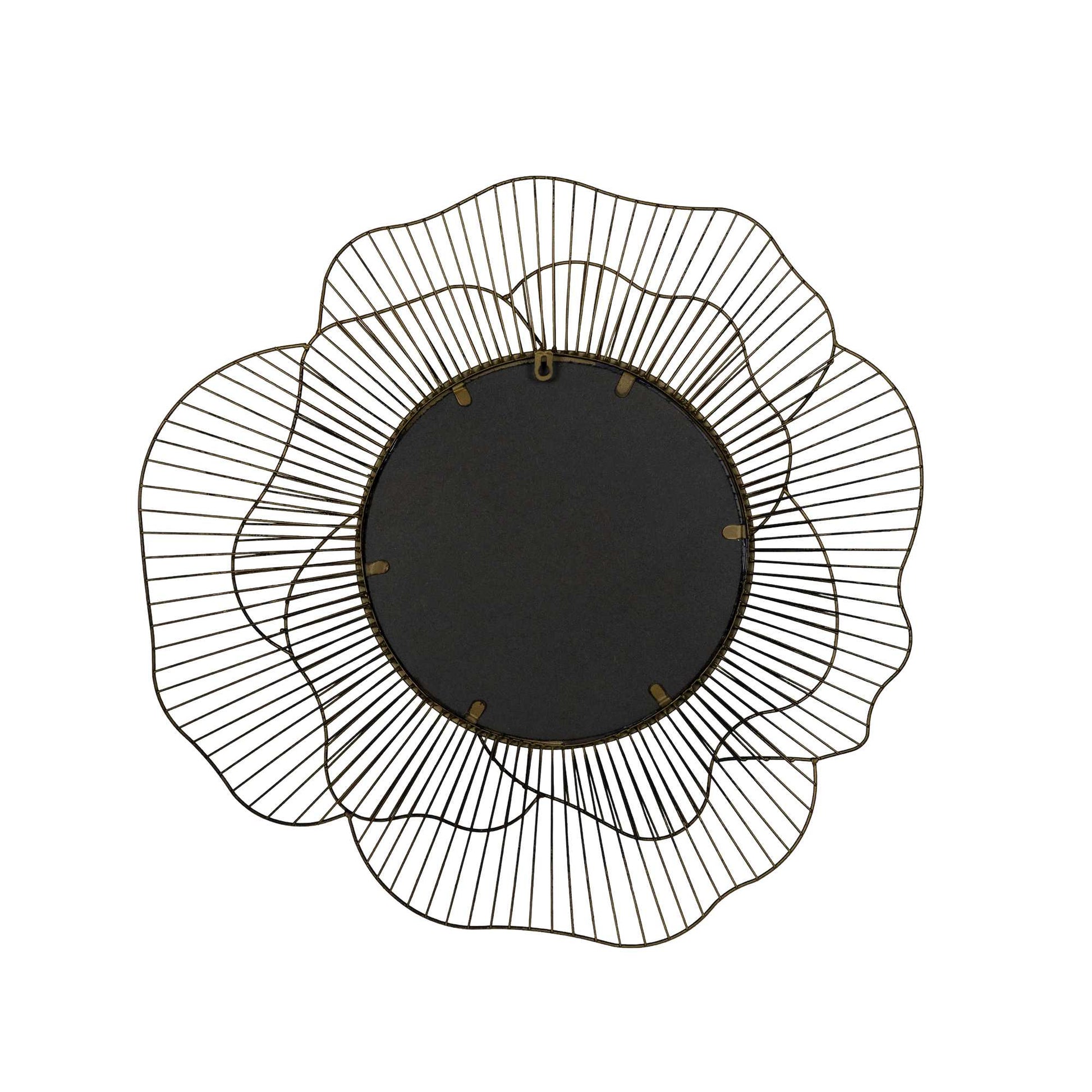 Elevate the look of your interiors by displaying this mirror. It shows off a large round mirror, which is bordered by a metal frame that looks like a fully bloomed flower. The whole piece is given a gold color, which pops out with its matte finish.