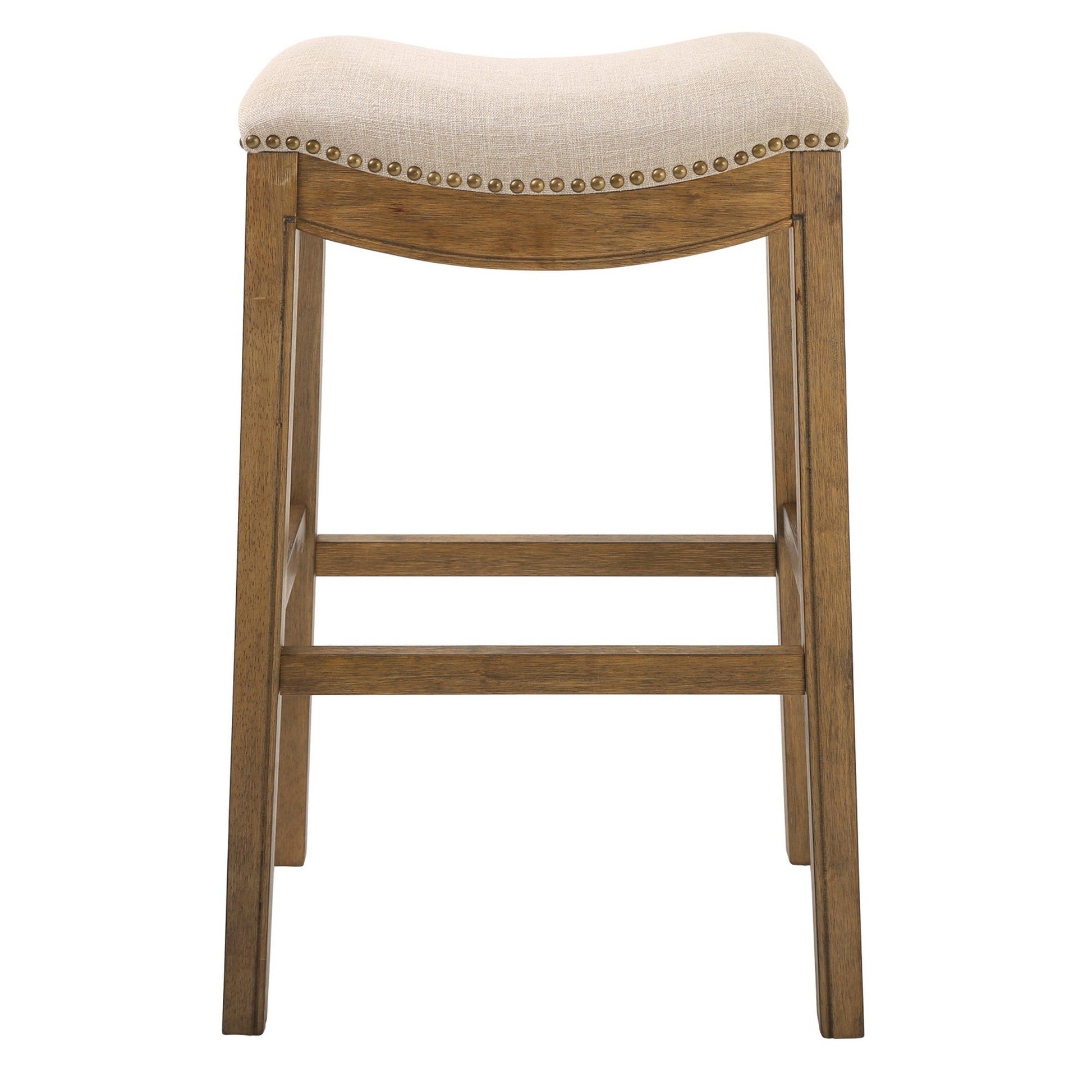 Saddle Style Counter Stool with Cream Fabric and Nail head Detail - Bar Height