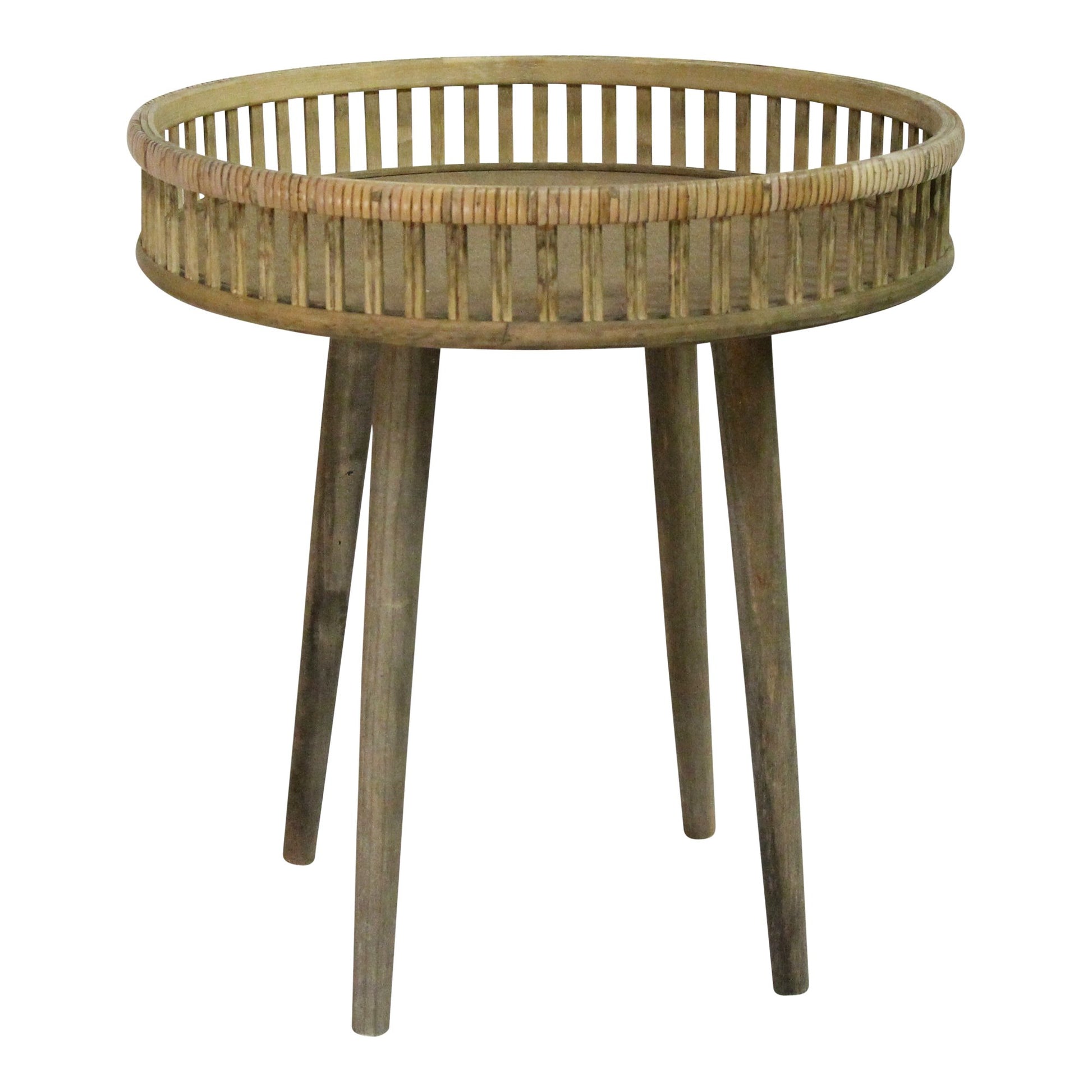 This Tulum inspired piece will bring the beautiful Caribbean town feel to your home with this Rattan Side Table. Artfully handcrafted of bamboo and wood, this beautiful rattan-like design spares no detail, even the distressed finish adds authenticity to its rustic appearance. This table is such a versatile accent. Use it as a plant stand or place it next to a side chair for using as a place for your coffee while reading a good book.