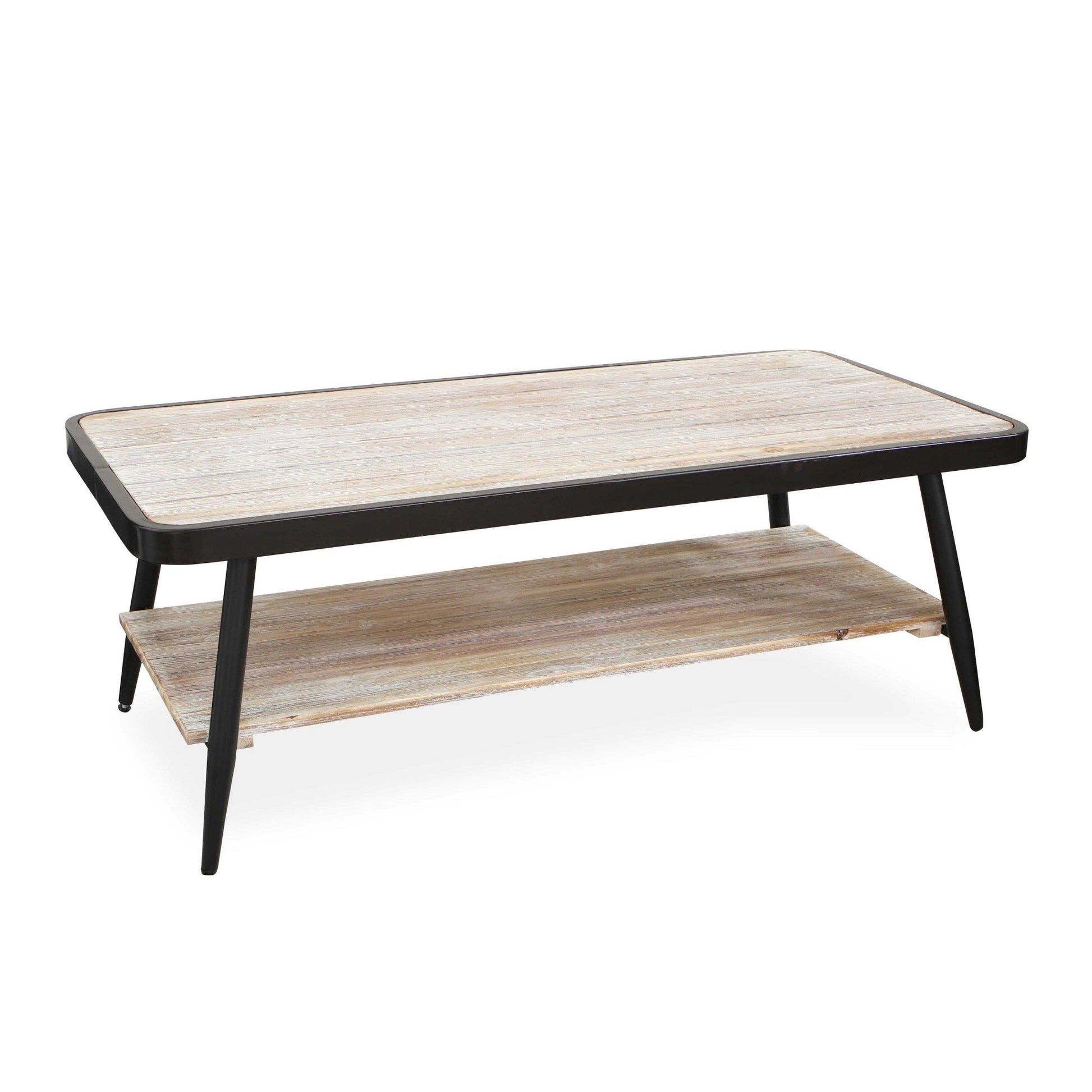 Its unique appeal and design will give a charming fresh feel to the atmosphere of your home. Features a dark gray finished steel frame. Table top and shelf is made with a whitewashed wood finish.