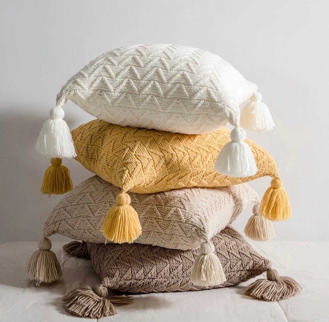 Our BOHO knitted throw pillow cover will add a cute & cozy touch to your home. Soft to touch and easy on the eyes this accent pillow has it all! The simple colors will last through all seasons.